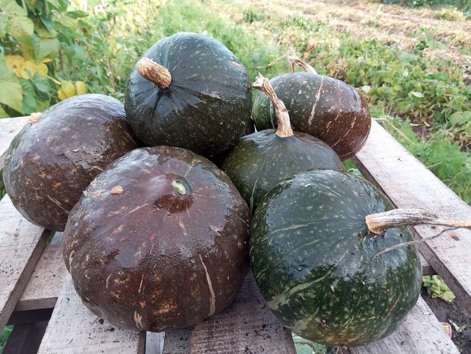 Courge de Hokkaïdo à la chair orange, épaisse et savoureuse, avec un délicieux goût de chataîgne.