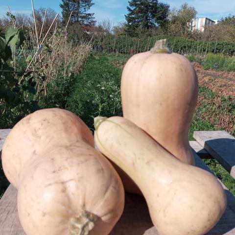 Courge butternut, à la chair dense et savoureuse. Goût de noisette, beurrée et fondante.