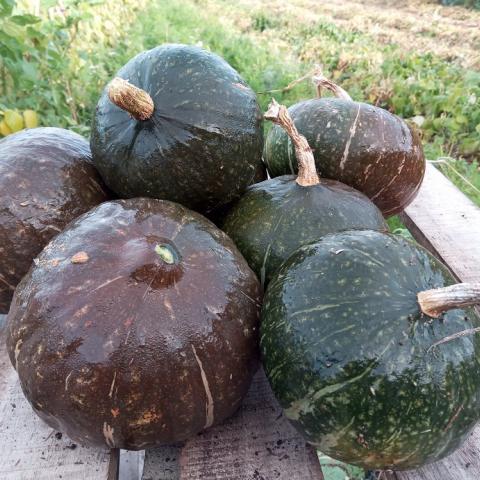 Courge de Hokkaïdo à la chair orange, épaisse et savoureuse, avec un délicieux goût de chataîgne.